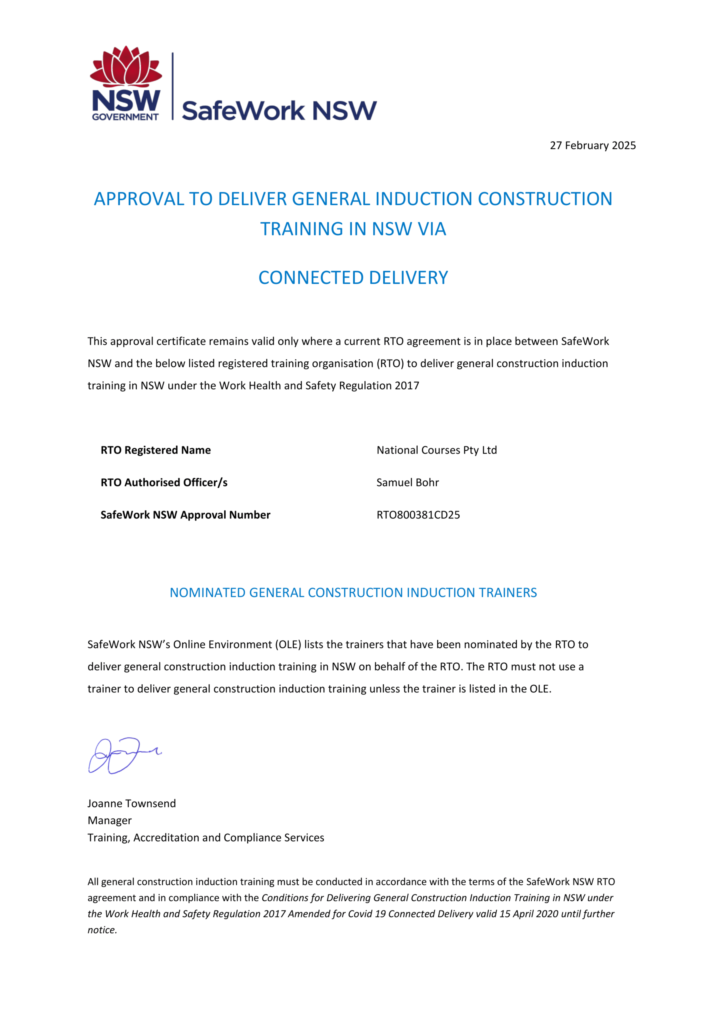 Approved by SafeWork NSW to Deliver Online White Card Training