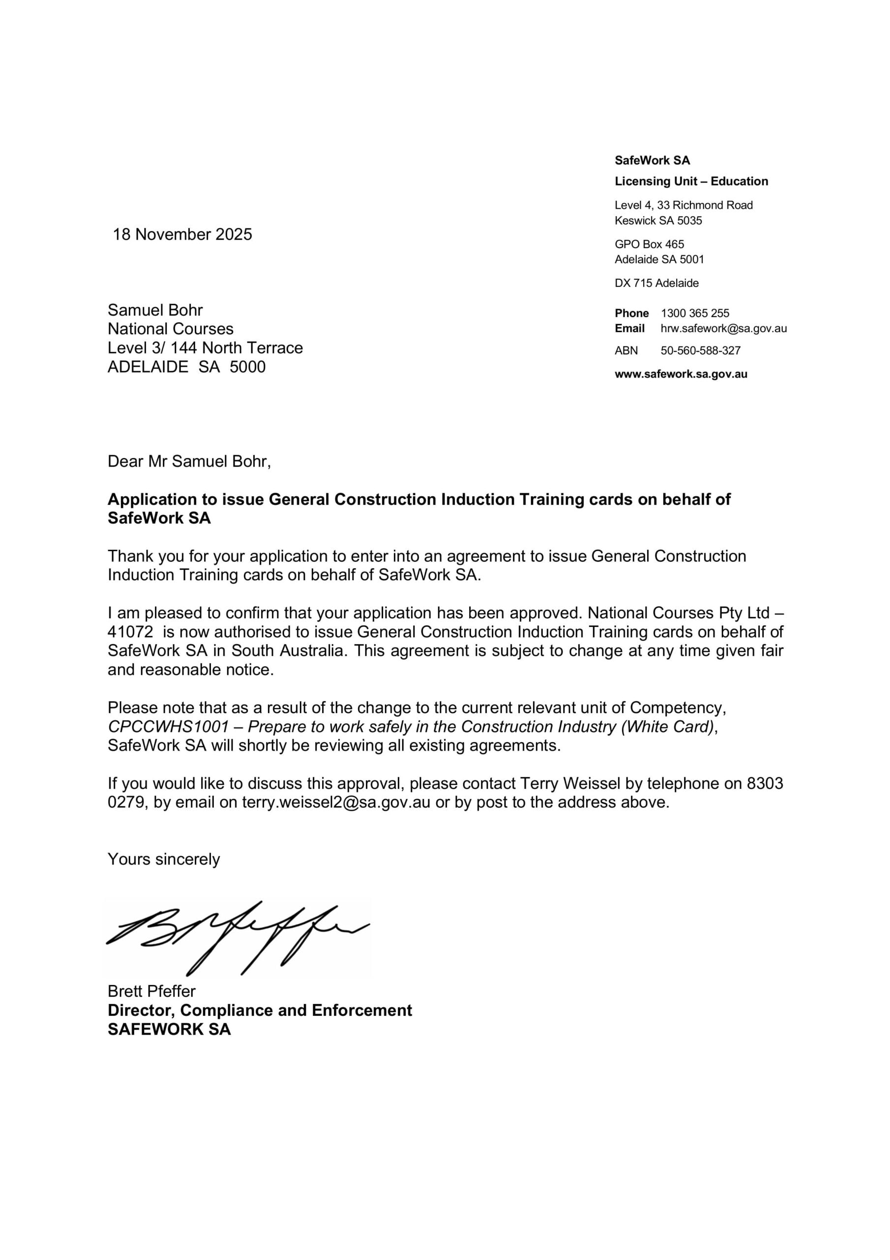 National White Card Courses is an accredited Registered Training Organisation (RTO 41072). Safework SA approved.
